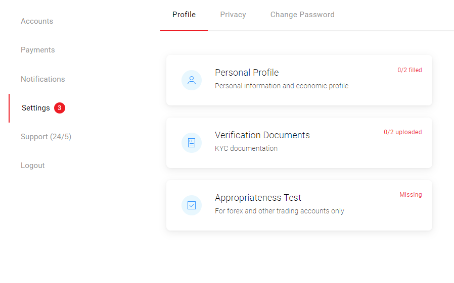 The documents can be uploaded on your Dashboard once you log into your account, under the section “Profile and Settings” > “Profile” > “Verification Documents” as shown in the below screenshots: