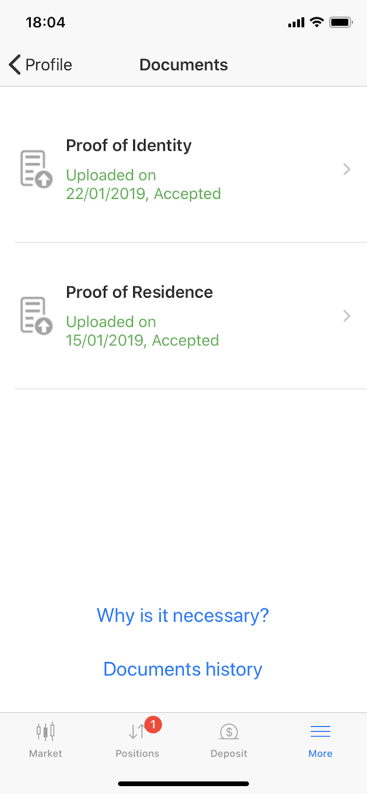 If you are using our mobile app, you can click on “More” > “Profile” > “Document Upload”.